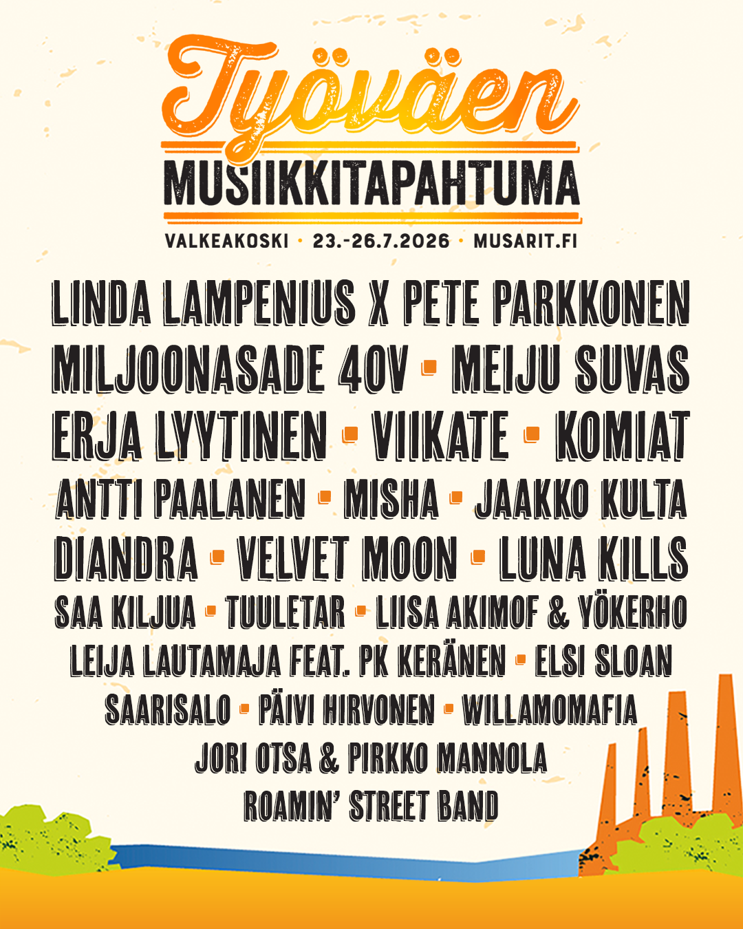 Työväen Musiikkitapahtuma järjestetään Valkeakoskella 23.–26. heinäkuuta 2026.